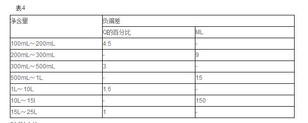 单件定量包装净含量负偏差不得超过表4的规定。同批产品所抽样品的平均净含量不得低于标签上标明的净含量。