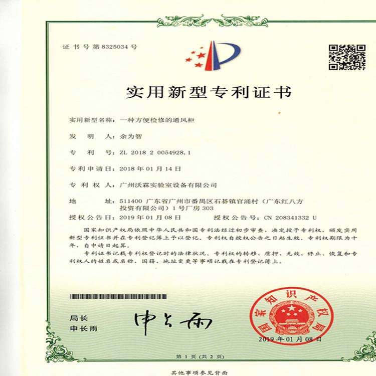专利证书——方便检修通风柜