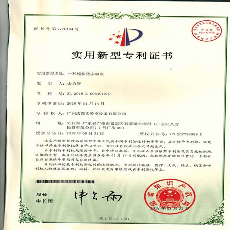 专利证书——模块化实验室